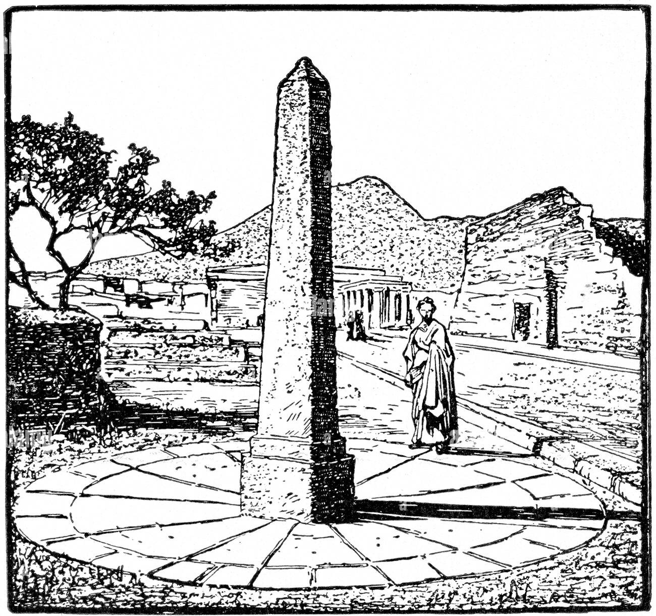 在地上竖直立一根杆子,它的影子便与太阳所在方位相对。这个叫做“晷针”(gnomon)的工具在公元前15世纪的埃及和巴比伦已经出现,也由开始掌握几何学的希腊人发展为定量测量的仪器:从影子与杆子的长度之比可以计算出阳光照射的角度,也就是太阳的高度。随处可见的各式各样柱形尖塔、纪念碑也具备这一功能。
