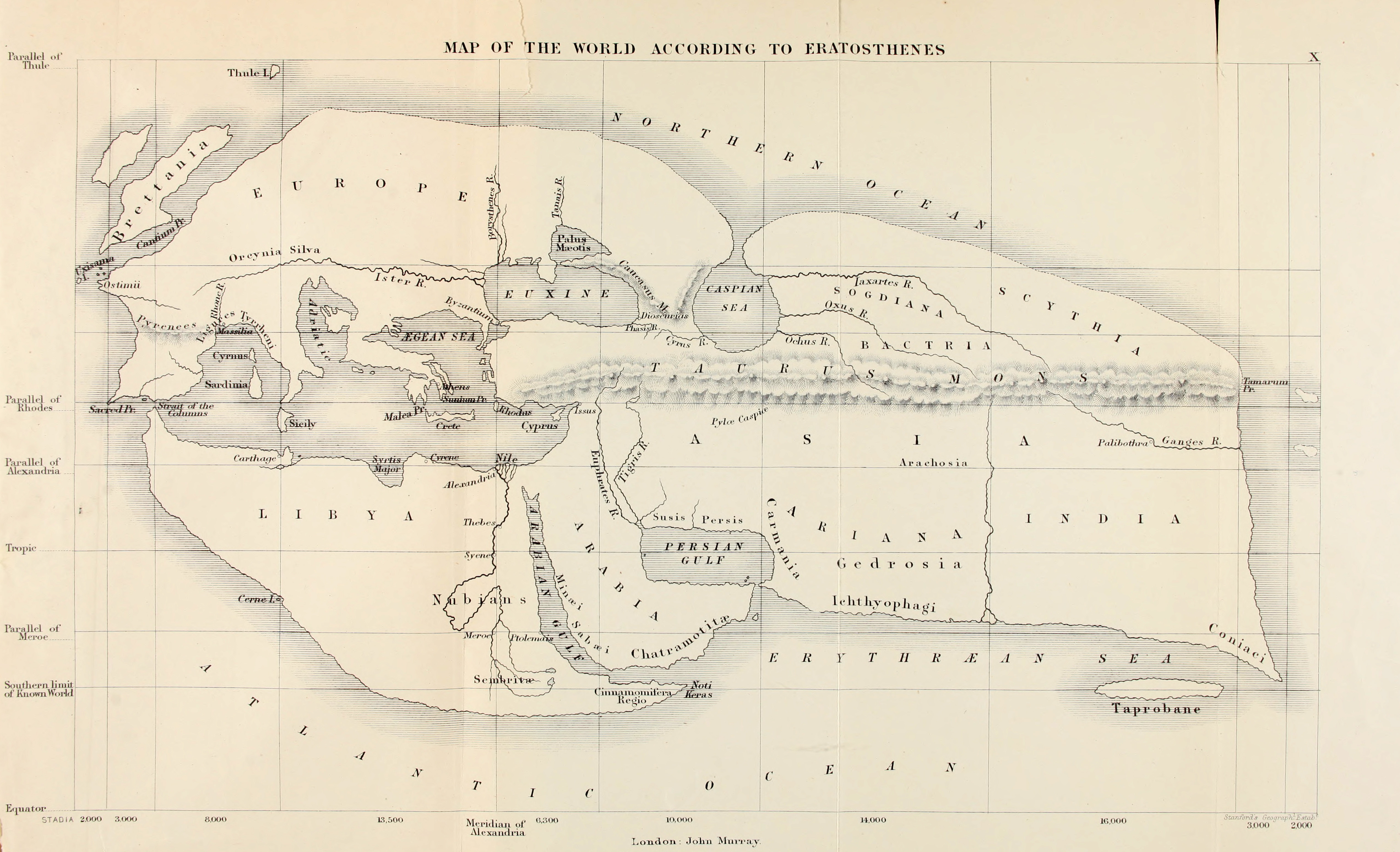 埃拉托色尼为那个终北之地专设一条平行线,标志人类所知世界的最北端。尽管他并不知道其确切所在。