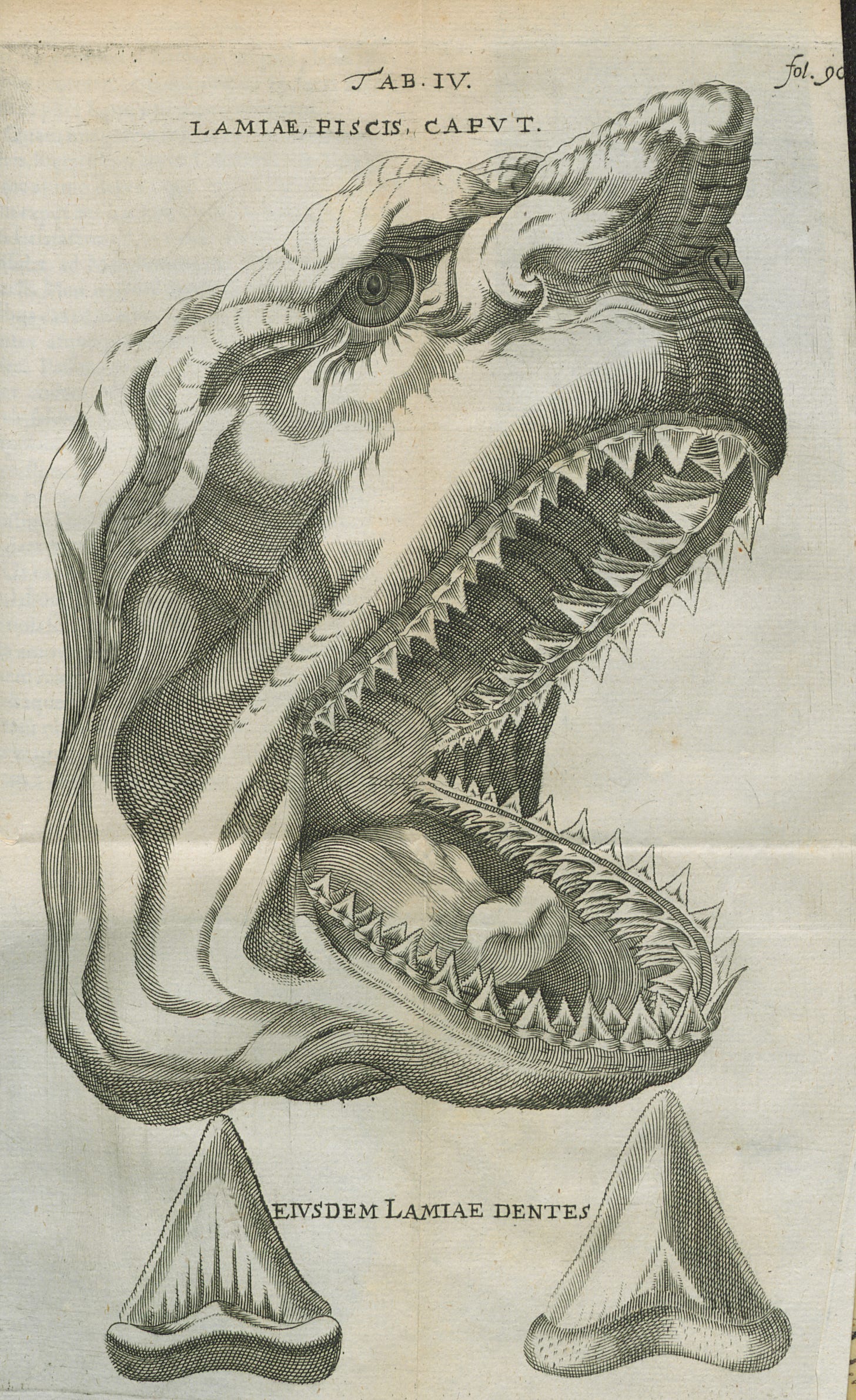 那年十月,邻近渔民捕捉到一条硕大的鲨鱼,特地运来进贡。斯特诺受命解剖这个庞然大物时猛然发觉鲨鱼的牙齿与他在山中见过的一些化石别无二致。那样的化石很常见,一直被认作来自蛇或鸟的舌头。没有人想到过它们会与鲨鱼有关。曾经“在高山上”生活、死亡的海洋生物不只是依附岸边的小小贝类,居然还有灵活机动的大鱼。