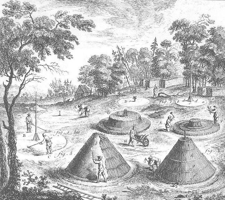 十年树木,百年树人。森林本是可持续置换的资源,只需几年或几十年即可再生。但是大自然的生态循环在拥有了铁器工具、如吉尔伽美什般砍树的人类面前也甘拜下风。人类居住地附近的树木和森林永久性消失,不再能持续推陈出新。早在与煤最先出现的《汉书》同时代,《淮南子》在《本经训》里对前人“构木为台”“焚林而田”愤愤不平,将这些行为归入“逮至衰世”的不负责任之列。英国海军深感在大航海时代一舰难求兹事体大,在1661年委托王家学会调查献策。新成立还不到一年的学会将任务交给创始人之一伊夫林(John Evelyn)。