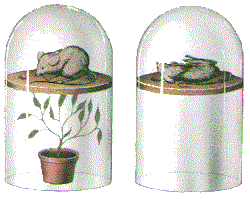 为更定量地探究植物与动物的不同特性,普里斯特利把点燃的蜡烛置放于一个隔绝空气的大玻璃罩里,测得火苗三分钟内熄灭。他又在玻璃罩里加上一株郁郁葱葱的薄荷苗,看到烛火能坚持到五分钟以上。小鼠也与烛火相似地在薄荷苗帮助下延长存活时间。植物不仅自己安然无恙,还具备“修复”被烛火或动物“损害”空气的功能。