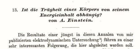 当爱因斯坦1905年发表的最后一篇论文在11月21日的《物理年鉴》付印时,一个今天堪称最广为人知的物理学公式开始出现在人们的眼前:E = mc²