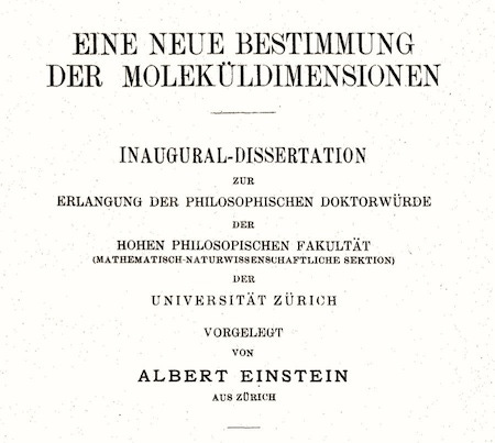 布朗运动论文发表的两天后,爱因斯坦趁热打铁再次向苏黎世大学提交论文。他运用同样的统计手法提出一个由液体的宏观粘滞度(viscosity)测算其中微观分子大小和数目——“阿伏加德罗常数”(Avogadro number)——的新途径。这一次他果然否极泰来。论文在几星期内获得学校批准,博士学位指日可待。