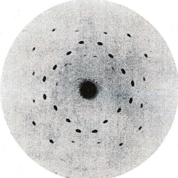 那时,古老的晶体学正因为X射线衍射的出现焕发出新的青春。不计其数的化合物在等待人们透过表面华丽鉴赏内在的风采。然而,尽管踌躇满志,身为物理学家的布拉格父子也没能预料到这个神奇的技术竟会将他们引入一个更新、更精彩的领域,一窥生命遗传的秘密。