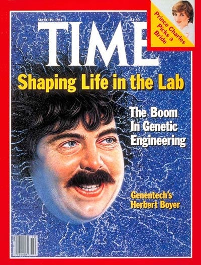 身为科学家的伯耶的头像还登上了《时代》10周刊封面,标志着基因工程时代的来临。
