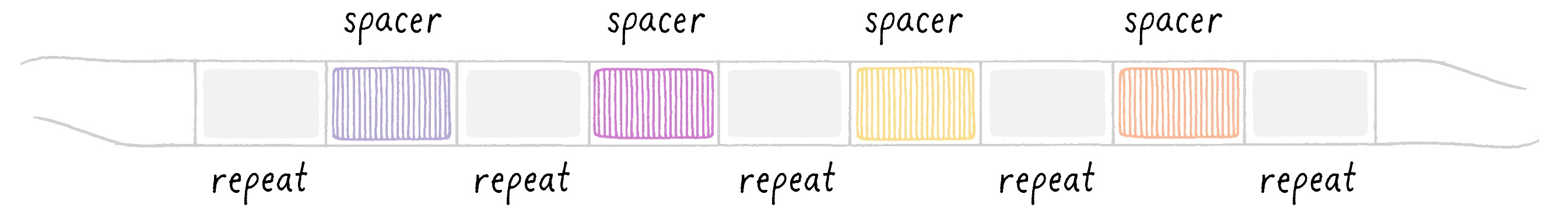 这些重复序列在细菌和古菌DNA长链中的重复没有明显的规律。在每两个重复序列之间将它们彼此分开的“间隔序列”(spacer)是一些长短、成分都不同的碱基序列。它们看起来像是普通的基因,但在细菌或古菌的细胞中却找不到相应的蛋白质。而如果这些序列只是像内含子那样的垃圾DNA,它们又全都被忠实地被转录为RNA存在于细胞之中,没有在RNA剪接过程中被去除。因此,它们都应该是古菌、细菌生命运作中必不可少的生命信息,只是无法猜透其实际用途。