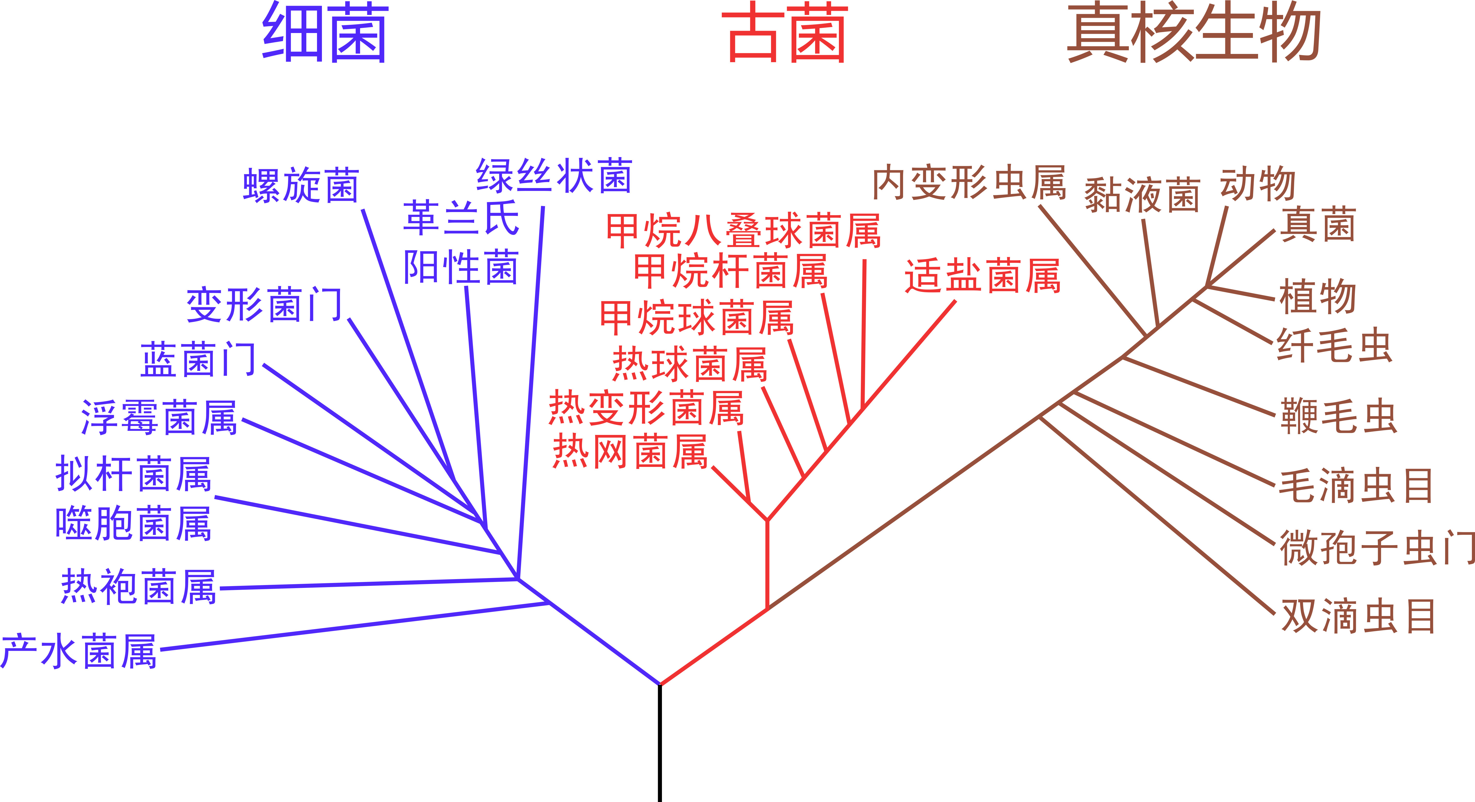 这个直观的分类在对生物的观察进入分子层次的1970年代遭遇挑战。原核生物与真核生物之间的区别不只是细胞核的存在与否,更在于它们的DNA和RNA中碱基序列的结构有着明显的不同。这说明它们分别来自截然不同的遗传承继。但同时,有些细菌表面上也是不具细胞核的单细胞生物,其碱基序列的结构却与普通细菌迥然相异,更接近于真核生物。微生物学家乌斯(Carl Woese)将这些别具一格的“细菌”专门设立有别于原核和真核生物的“第三域”1,让它们在达尔文的生命之树上自成一枝。因为在进化的传承上直接来自远古的微生物,这个新的域被命名为“古菌”(Archaea)。