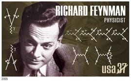 费曼这种魔术般技巧令其他物理学家既惊艳又困惑。直到后来戴森6证明了它与朝永振一郎和施温格繁复的方程式在数学上其实完全等价之后才如释重负。这个“费曼图”不仅简单方便,而且在物理图像上直观明了,很快成为量子电动力学的正式语言。费曼因此一举成名,开始了他在物理学界独特的传奇生涯。7