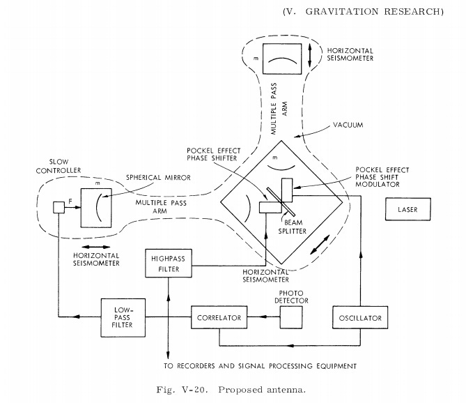 韦斯1972年发表的这篇内部报告分两部分,前一半是用高空气球测量新发现的宇宙微波背景辐射,后半部是引力波干涉仪的设计和研究。他当时把它叫做“引力天线”7。这是他的干涉仪设计第一次面世,但因为只是一个学校内部报告,很少人知晓。