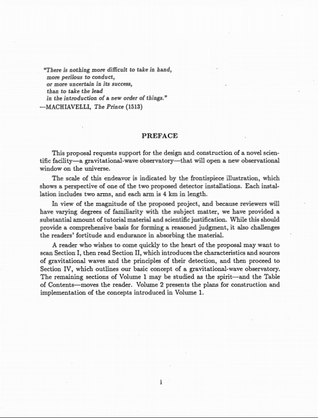 他们在申请书的导语页上引用了意大利学者马基雅维利81513年所著的《君主论》中的句子来描述这个项目的风险、意义和决心: