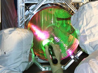 反射镜的表面涂有十几层专门为固体激光器的红外激光设计的薄膜。涂膜后的镜子表面光滑到纳米级,能够把到来的激光几乎全部反射回去。其实在这里,“几乎全部”是远远不够的。LIGO的反射镜达到的标准是每3百30万个光子中,只有一个光子会被镜子吸收,其余全被反射。