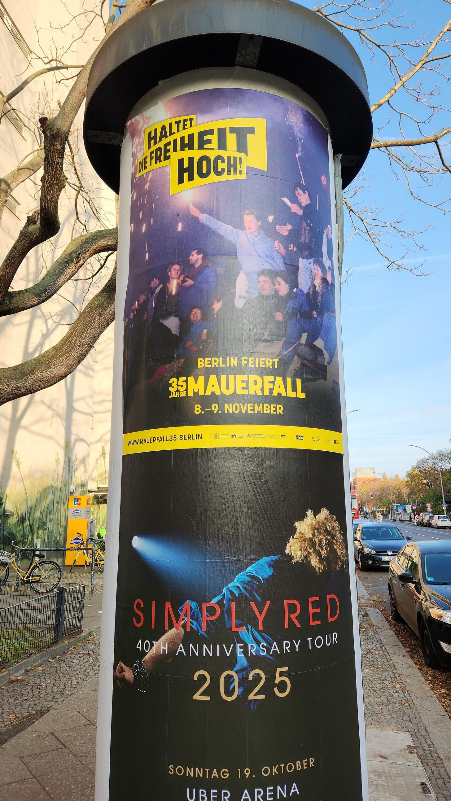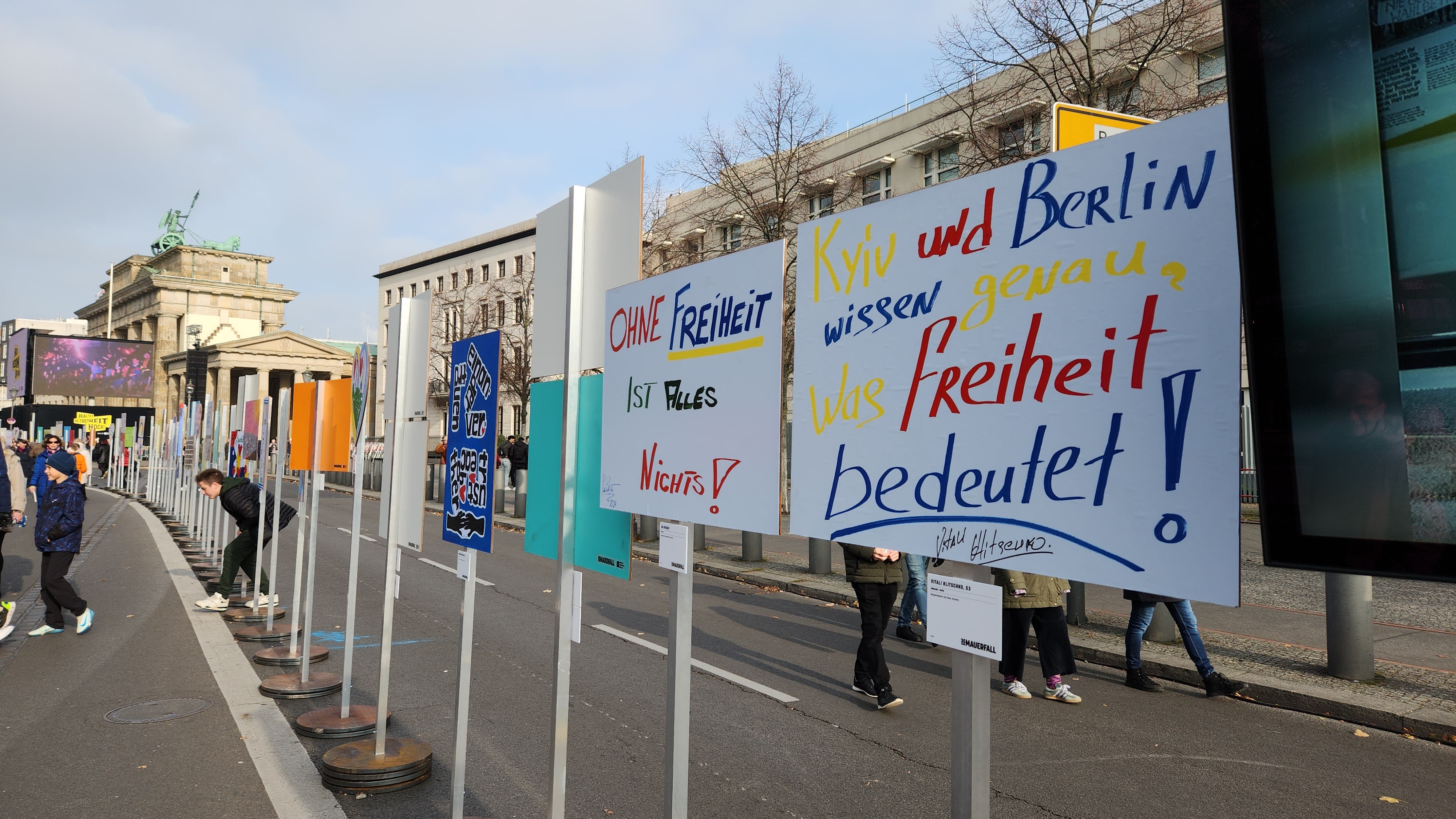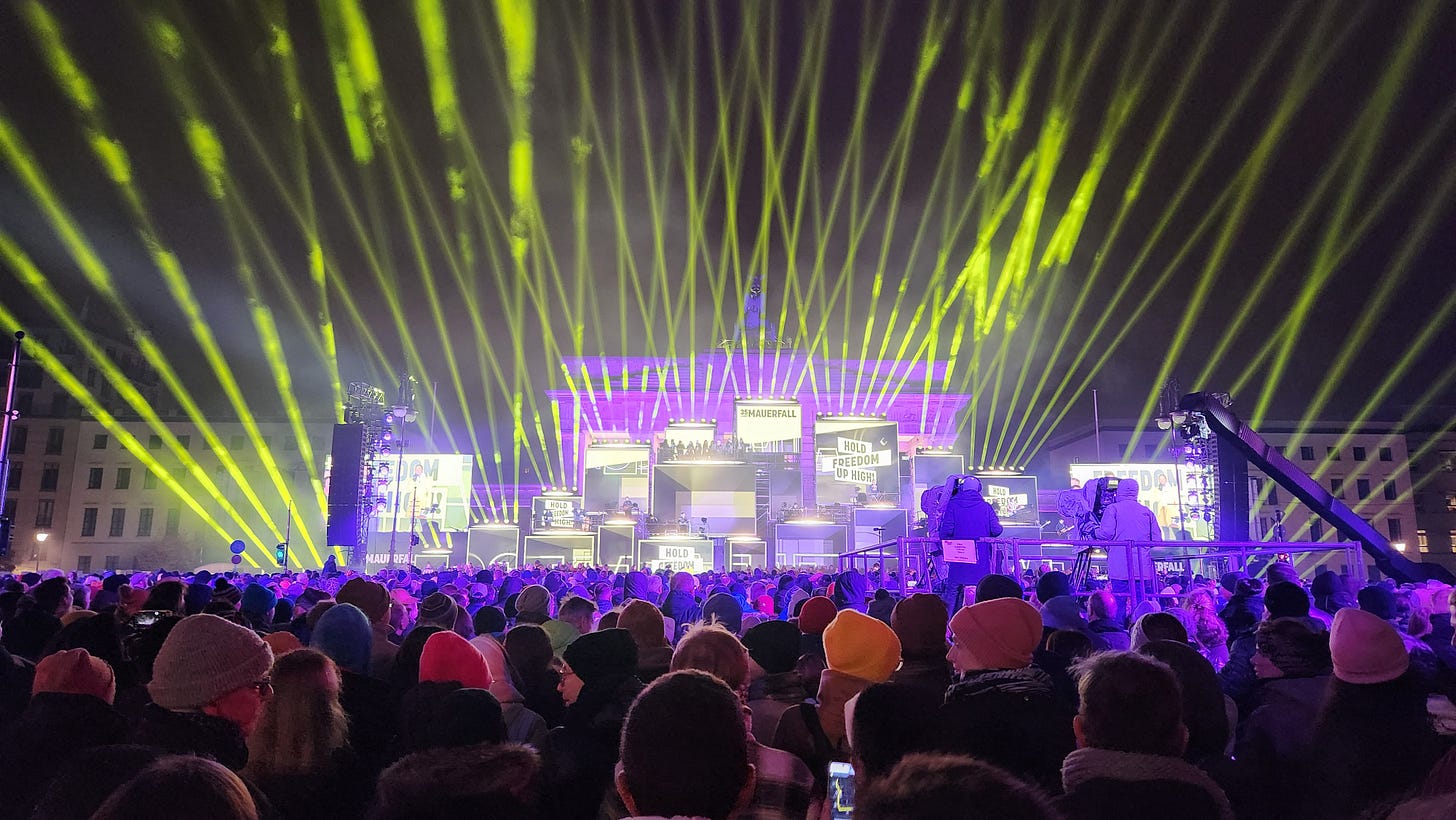 一个星期前来到柏林时,墙倒35周年纪念的广告已经随处可见。活动的主题是“高举自由”(Hold Freedom Up High)。