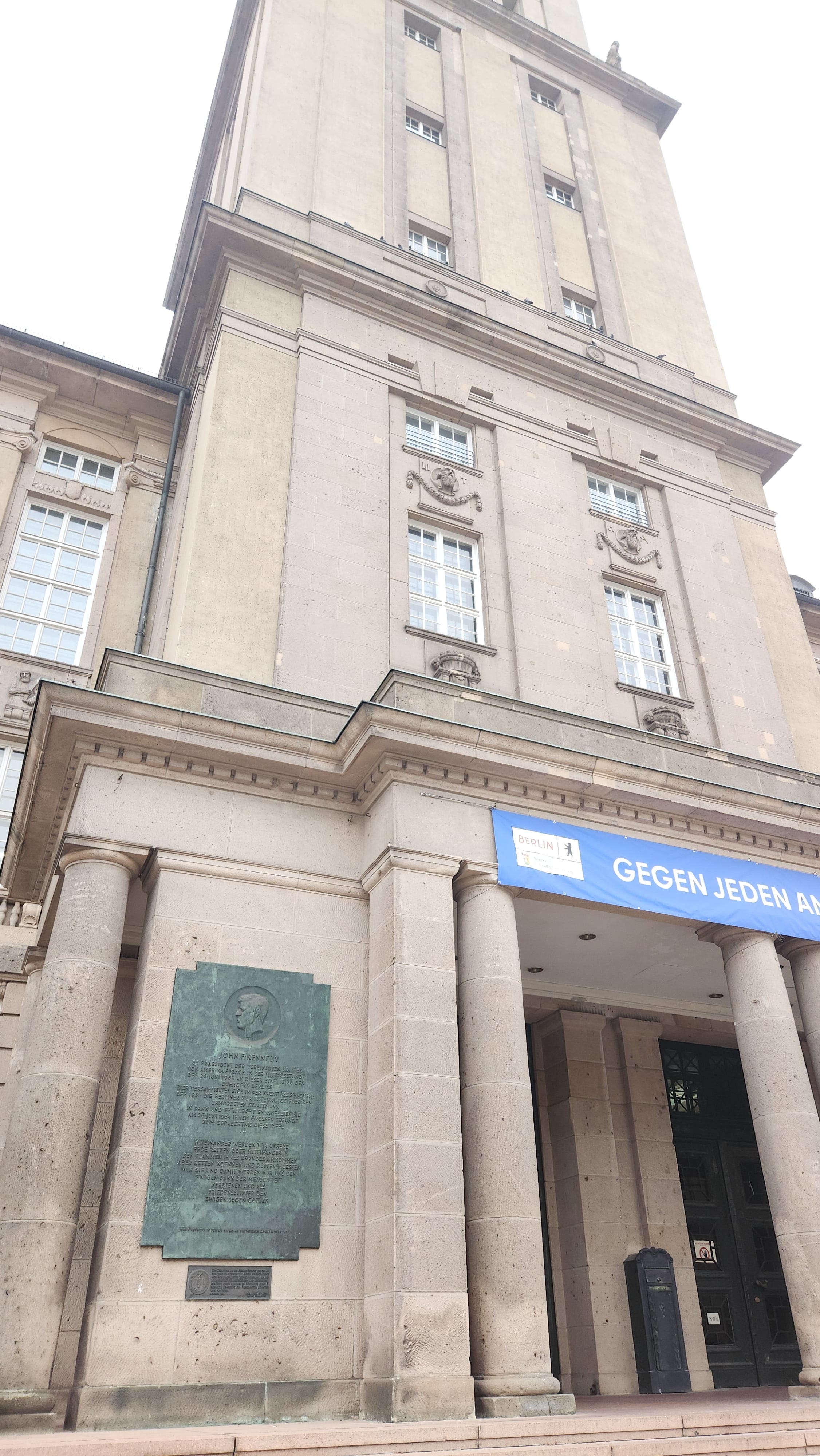 柏林墙的横空出世曾让西方国家措手不及。1963年6月26日,美国的肯尼迪总统在柏林近郊的舍纳贝格市政厅外发表演讲,用德语说出“我是一个柏林人”名言。那个市政厅前的空地后来被命名“肯尼迪广场”。大楼外墙上也有一块铭牌,纪念那个美国人民与被围困柏林人同在的历史时刻。