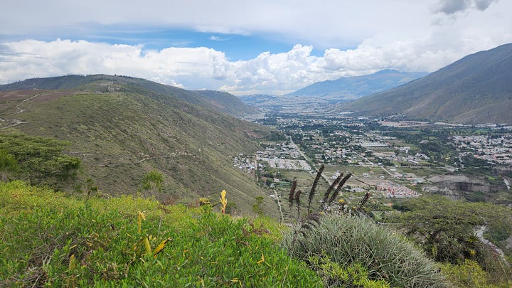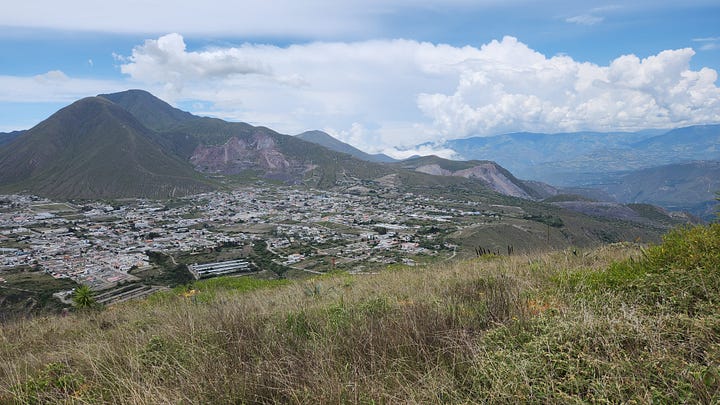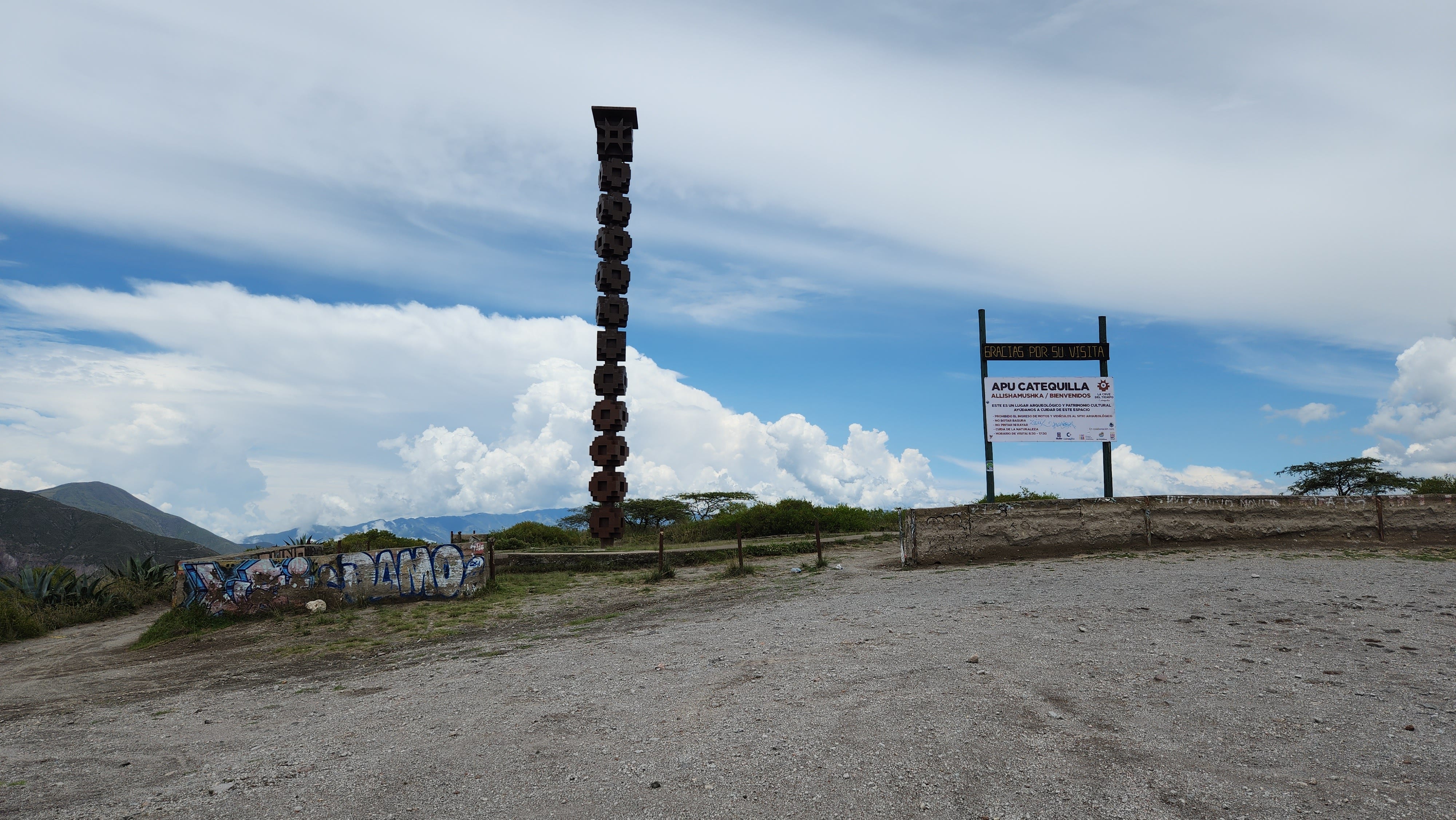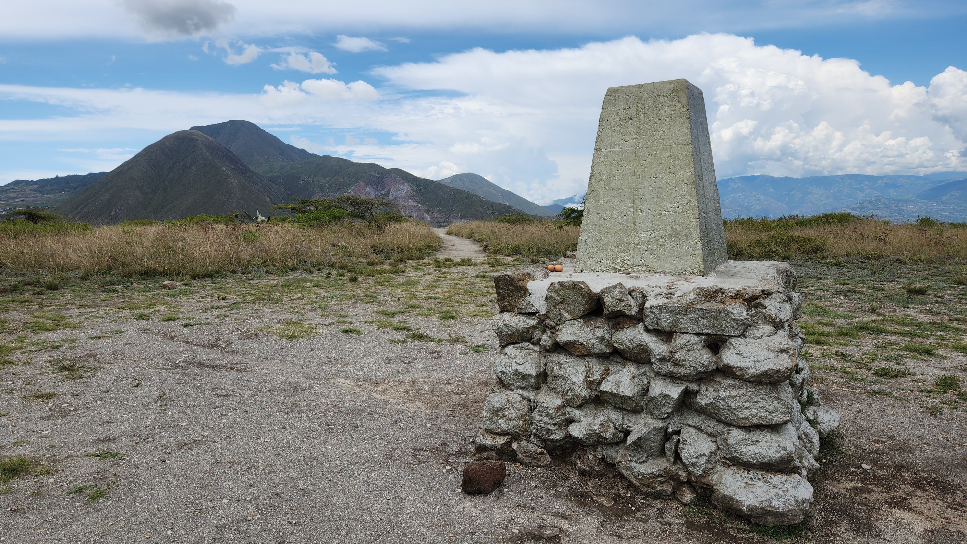 从世界中点城和太阳之路博物馆再往东并偏北有一座海拔2,638米的卡泰基亚山(Monte Catequilla),在环抱基多的群山里并不出众。不过这座山有点特别,突兀地耸立在两个山谷之间。相传还在印加帝国之前,附近的原住民已经在山顶上观察天象、祭祀神灵。今天的人可以开车直达山顶,但需要胆战心惊地在一条悬崖边坑坑洼洼的土路上行进。山顶四周遍布野花,既能尽享四周开阔的山野,也可以俯视一个巨大的火山口和山谷里的城市。