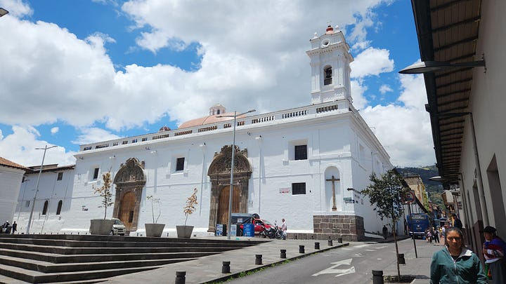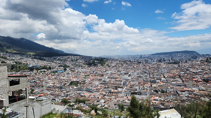 厄瓜多尔(Ecuador)这个国名来自西班牙语的“赤道”(equator)。哥伦布在1492年发现这片新大陆之前,这里属于纵横中南美洲的印加帝国(Inca Empire)。惜乎帝国欠缺天时人和,在西班牙人大举来临时已因自然灾害和内战虚弱不堪,终为殖民者的洋枪火炮和传染病菌征服。出于哥伦布的谬误,帝国后裔、这片土地的原住民被泛泛地称作“印第安人”。厄瓜多尔的首都基多(Quito)距离赤道只有26千米。市中心“旧城”保存着很多古老的天主教教堂。大楼和住宅均洋溢着浓郁的西班牙风情。夹杂其间的是历历在目的印加帝国余风,或曰印第安传统文化。