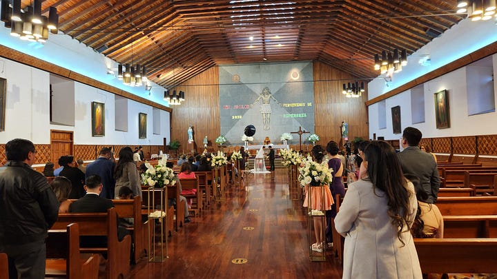 塑像的背后是里奥班久负盛名的大教堂。信步走入,不意邂逅一场正在进行中的婚礼。