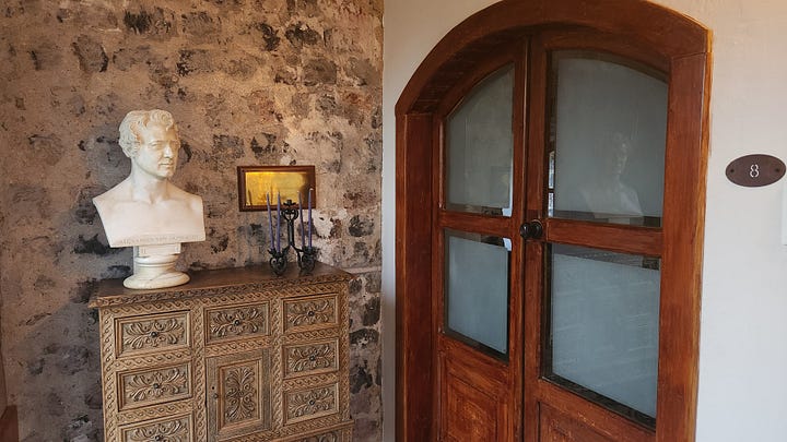 洪堡住过的房间现在是庄园最豪华的客房。门外展示着他的头像、自然画卷和其它介绍材料。
