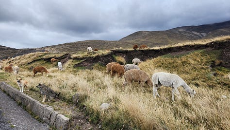 从科托帕希到钦博拉索只是约四小时的车程。那是一条时而穿行山涧底部狭窄夹缝,时而盘旋在半山腰的陡崖,时而抵达极目楚天舒山顶平台的盘山公路。天气终于略有改善。远处的雪峰、近处的山水瞬息万变,目不暇接。美中不足的是车道狭窄,路旁基本上找不到停车观景、照相的空地,只得砥砺前行,将大好景观尽收眼底、存于记忆。