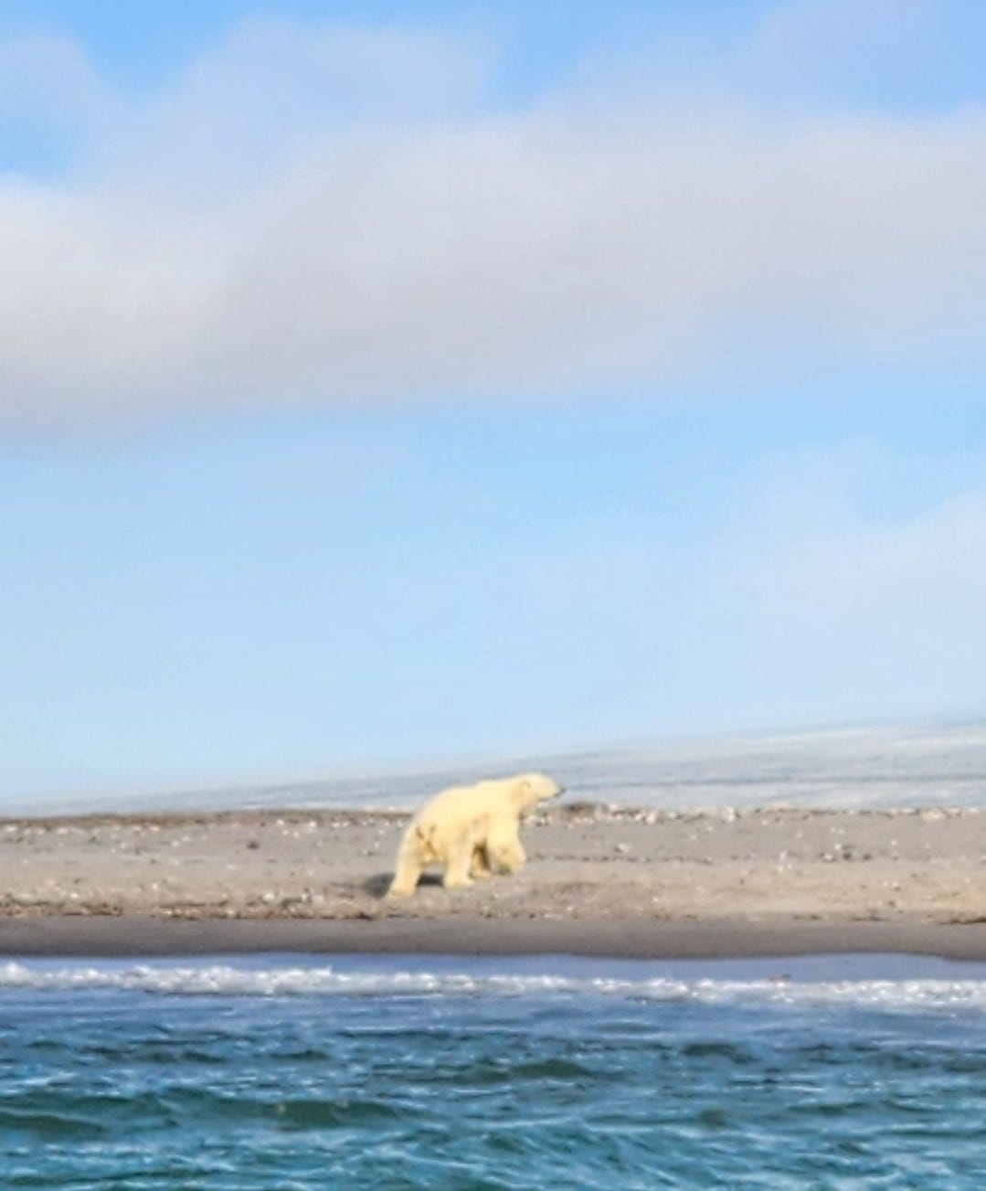 白岛是斯瓦尔巴群岛东北角最为偏僻的小岛,与俄罗斯的北极岛屿隔海相望。那也是邮轮旅程中的一站。从最北点折返后,邮轮一路往东,准备在白岛登陆游玩。然而甫一接近,探险队员已经通过望远镜里看到岛上有北极熊。登岛计划不得不取消。
