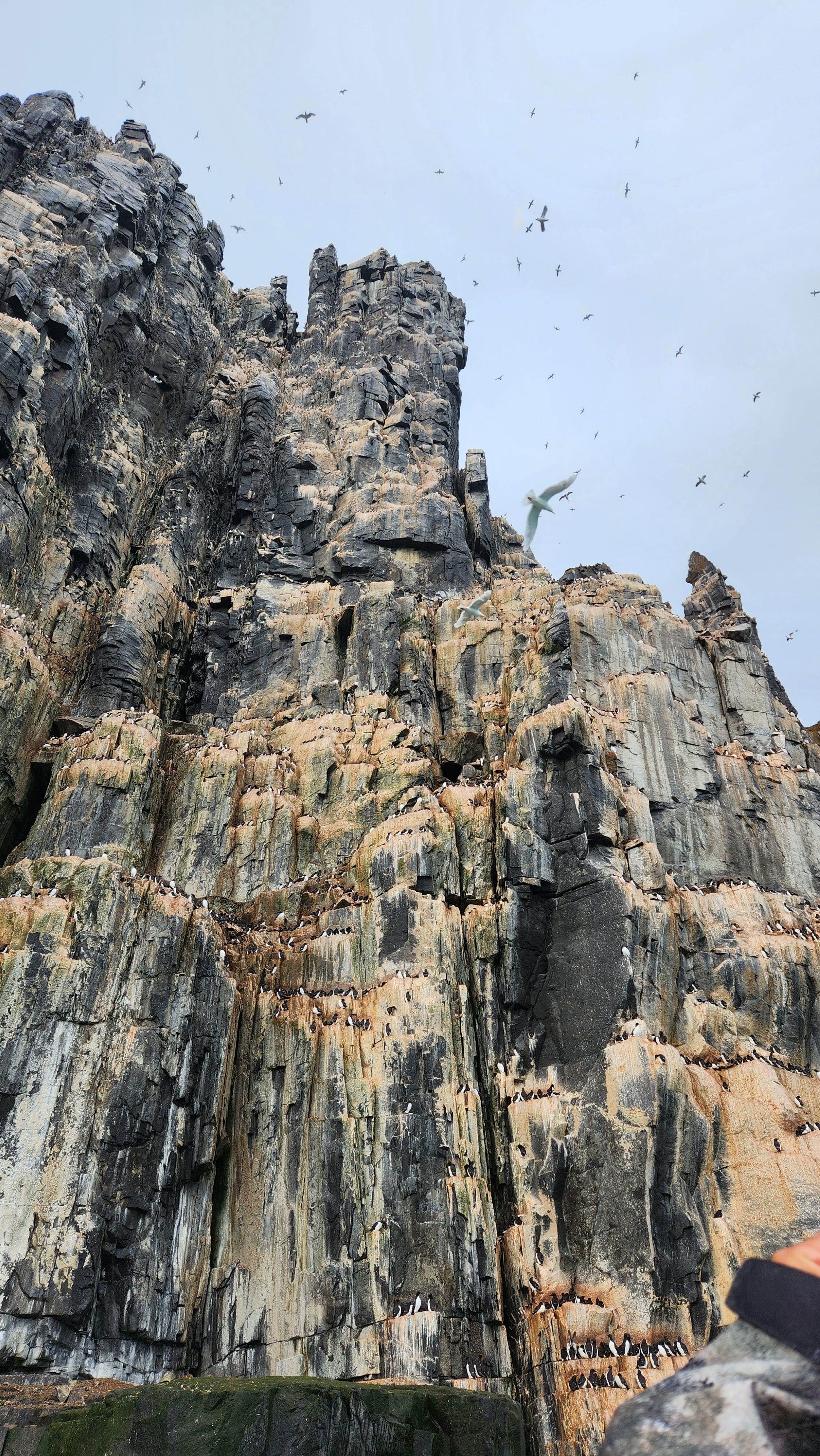 最热闹的莫过于天上飞的鸟类。它们为躲避北极狐在陡峭的岩壁上安家生息。斯瓦尔巴及挪威和北欧等地常见的狭窄海湾和峭壁也是百万年前冰川的杰作。