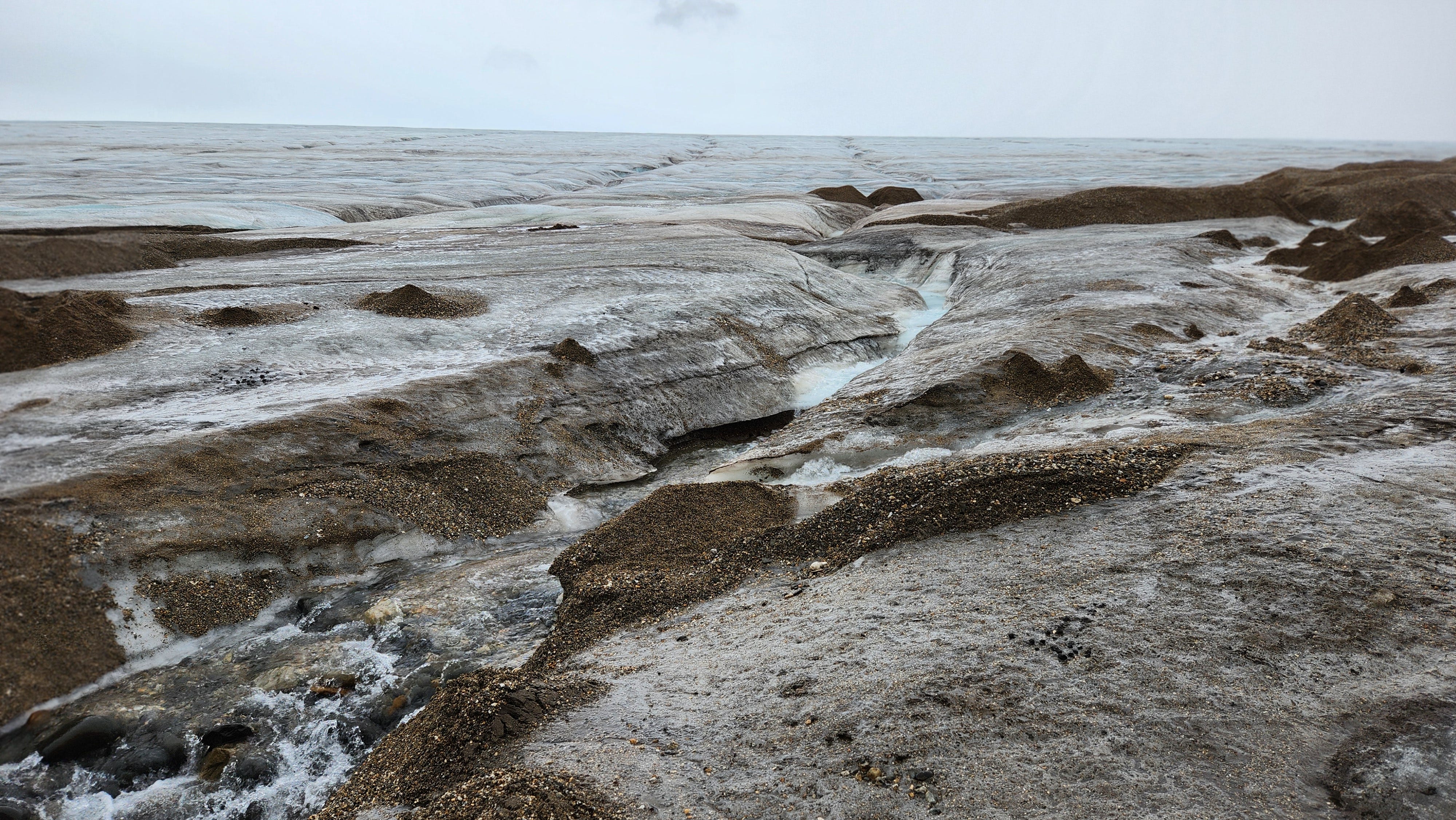 不过也有不谐和的情景。在返途中见识到夹杂着大量泥土的冰川,暗黑狰狞。