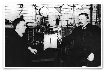 导师汤姆森却在此时谆谆教诲:作为科学家,你不能同时侍奉上帝和玛门(Mammon,代表财富和贪婪的假神)。在他的感召下,卢瑟福选择了上帝和科学。不久,意大利的富家子弟马可尼(Guglielmo Marconi)后来居上,成为“无线电之父”。他不仅发了财,还赢得1909年诺贝尔物理奖。