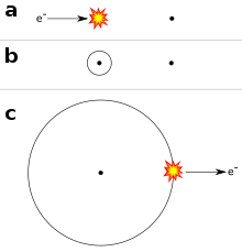 原子在某一个点发出光子,光子与电子一样直线运动,到达另一个点被另一个原子吸收。这个过程正符合他用泡泡悖论演示的情景。但它却也带来了新的问题。他的光子只是粒子,没有波动,既不符合波粒二象性也与一百多年的干涉、衍射实验观察相违。于是,爱因斯坦不得不设想也许另外还存在一个服从麦克斯韦方程的“鬼场”,以波动的形式传播。