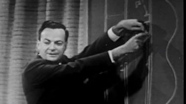 在康奈尔大学,费曼在大礼堂里每天一小时地接连做了七场演讲,诠释物理学的特点。英国广播电台特意全程录像,将其制作成广为传播的电视片。演讲内容随后也以《物理定律的特征》3为题出版成书,风行一时。