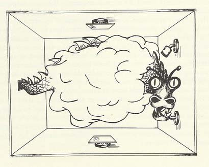 与他当年导师玻尔一脉相承,惠勒认为我们对物理世界的认识局限于实施测量的结果,对没有测量过的部分一无所知。在已经不再只是假想的双缝实验中,我们知道光子进入了仪器,也知道它到达后面屏幕上的某个地点。但因为没有测量,我们便不可能知道它是如何完成这个行程的,包括它究竟经过了哪一条狭缝还是同时经过了两条狭缝。惠勒将这个困境描述为“大烟龙”3。与见首不见尾的神龙不同,这条大烟龙可以清楚地看到尾巴(进入仪器时的光子)和脑袋(抵达屏幕时的光子)。但其余部分被浓厚的烟幕遮掩,无法一窥真身。
