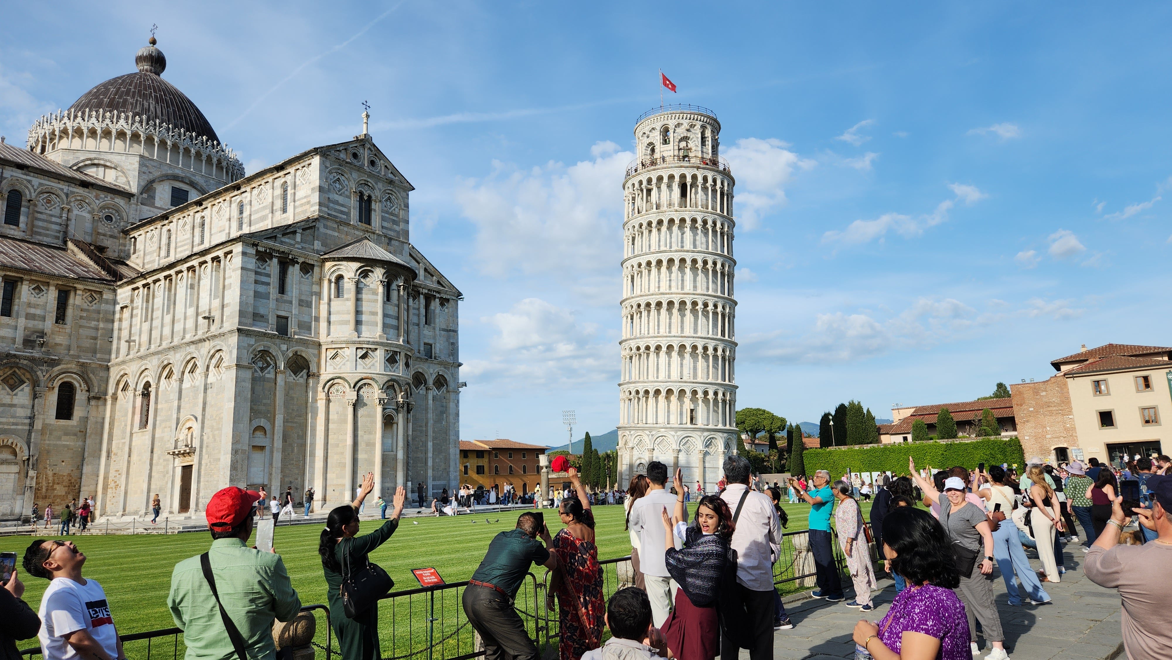 由比萨大学离开阿诺河岸走上几分钟,便来到比萨的斜塔下。