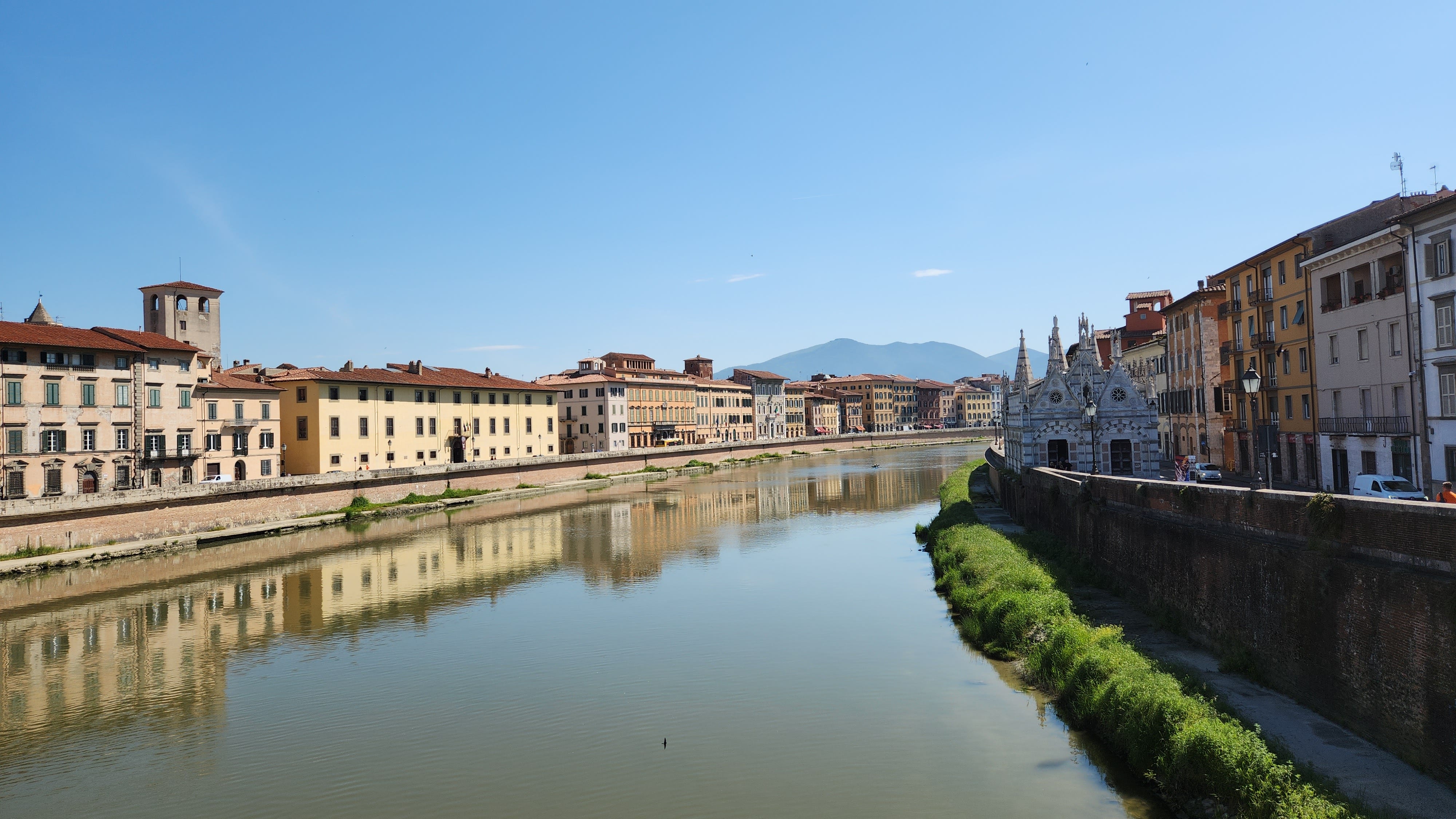比萨以前滨海,一度是古罗马的海军基地。但这里风水欠佳,常年淤泥填海,以至于离海越来越远,不再是港口。不过宽广的阿诺河在这里拐上一个大弯后入海,为比萨保留一定的水运优势。