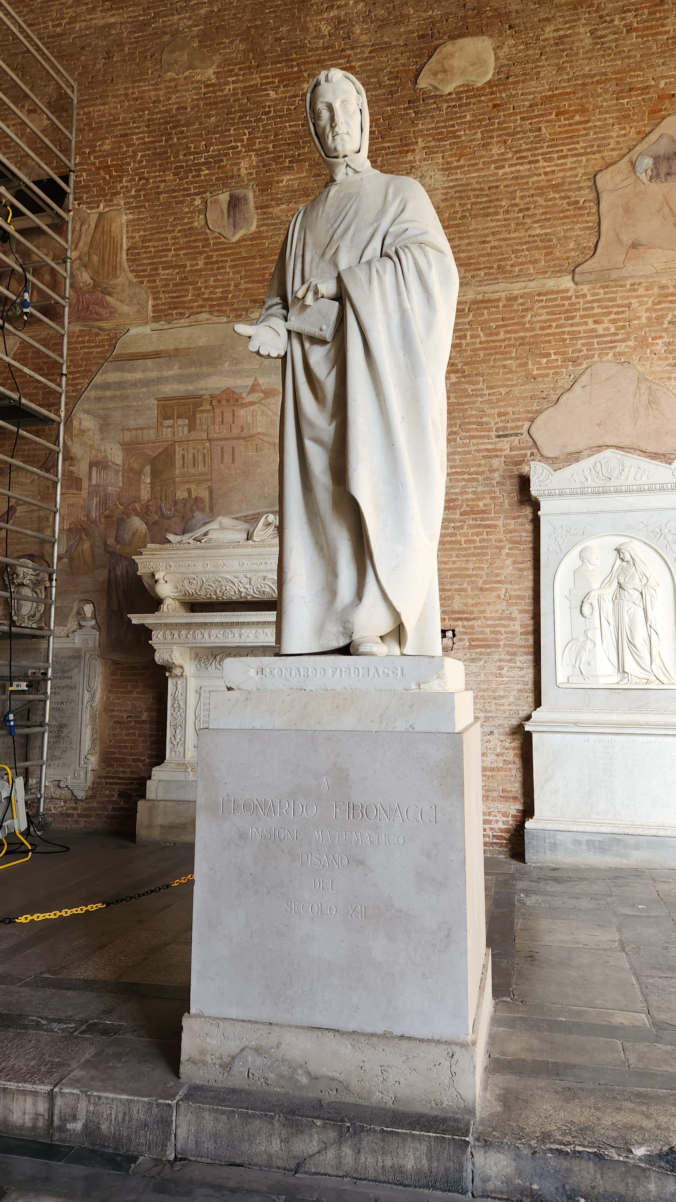 但伽利略没有在比萨终其一生,也没有埋葬在这里。墓园里有另一位数学家,也是比萨的骄傲:比伽利略更早五个世纪的数学家斐波那契。