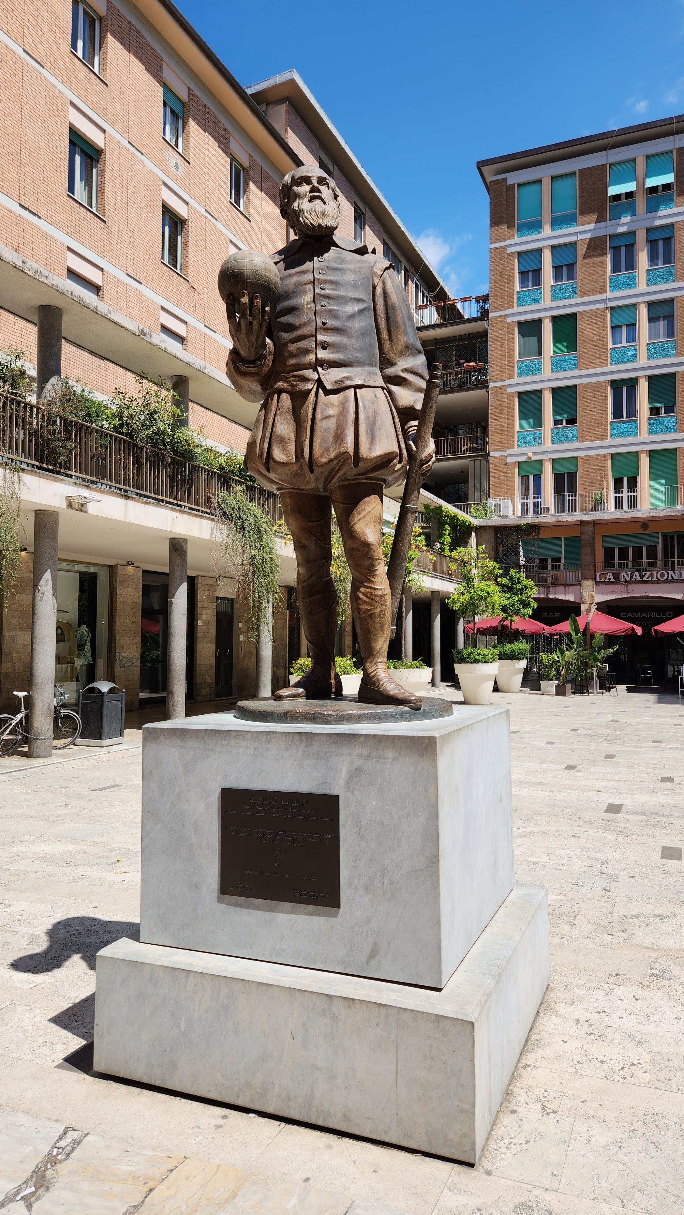 不过距离不远也有一座近年设立的塑像,其中伽利略手持望远镜仰望星空。