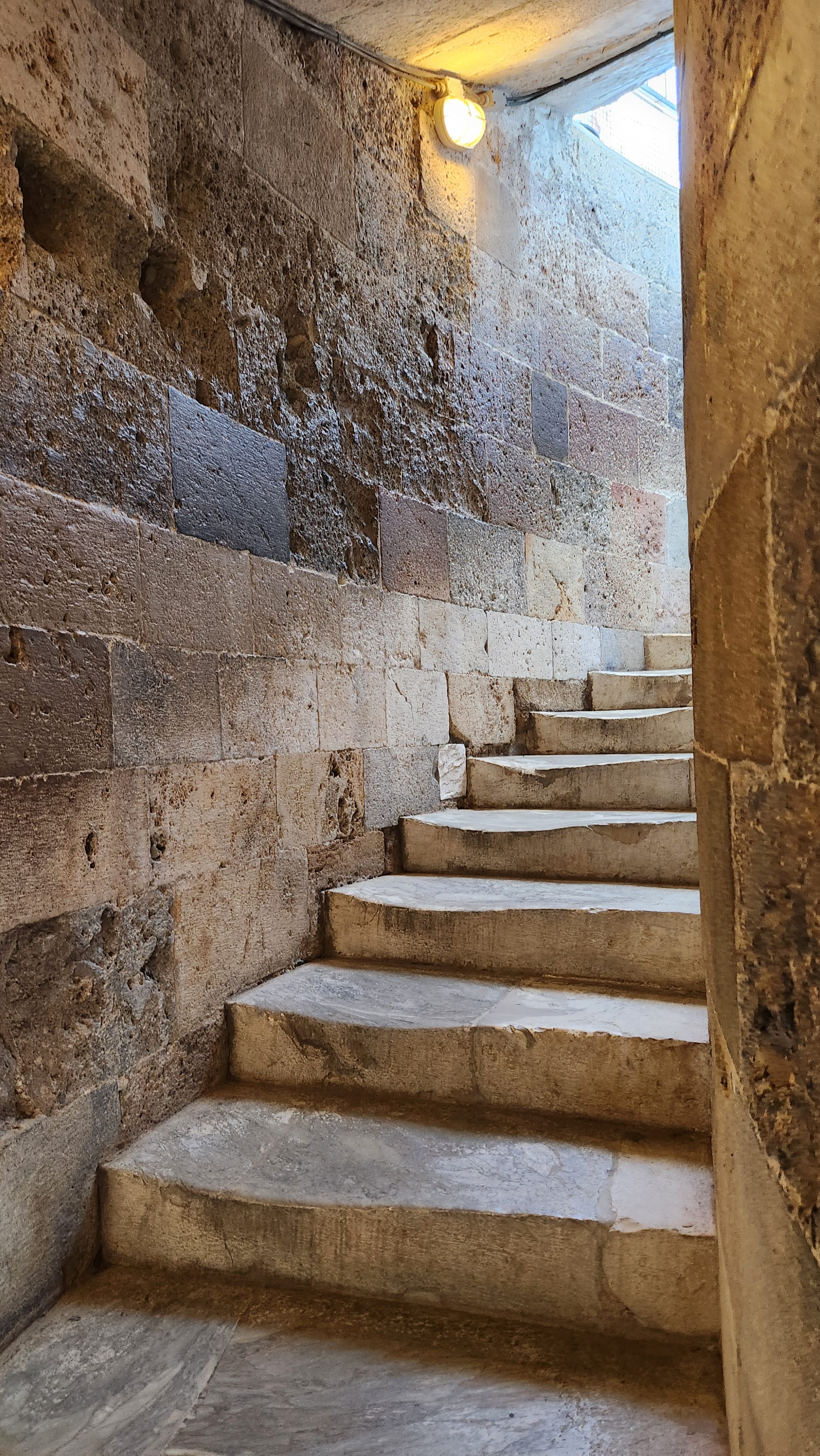 塔壁中建有石阶,作为环绕塔体的旋转楼梯供人上下。石阶的宽度仅能容纳两人侧身而过,大理石的阶梯也在几个世纪的踩踏下严重凹陷。