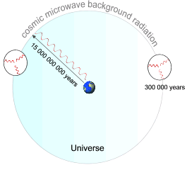 我们在地球上往东看,在接近视界的距离上观测到了微波背景辐射。我们转过身来再往西看,也是在接近视界的距离观测到了微波背景辐射。它们都在我们的视界之内。但是,因为它们各自在相对的两个方向,彼此之间便间隔了接近两个视界的距离。从宇宙大爆炸到今天,光——或任何信息——不可能从其中一边传递到另一边。