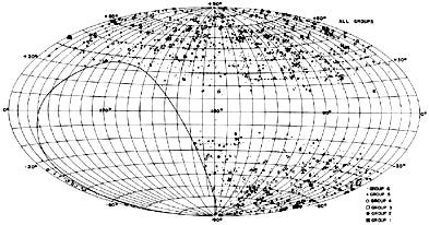 自然,这不是银河系所特有的现象。20世纪中期时,天文学家意识到相当多的星系之间可能存在着引力的牵扯而组群抱团,叫做“星系团”(clusters of galaxies)。
